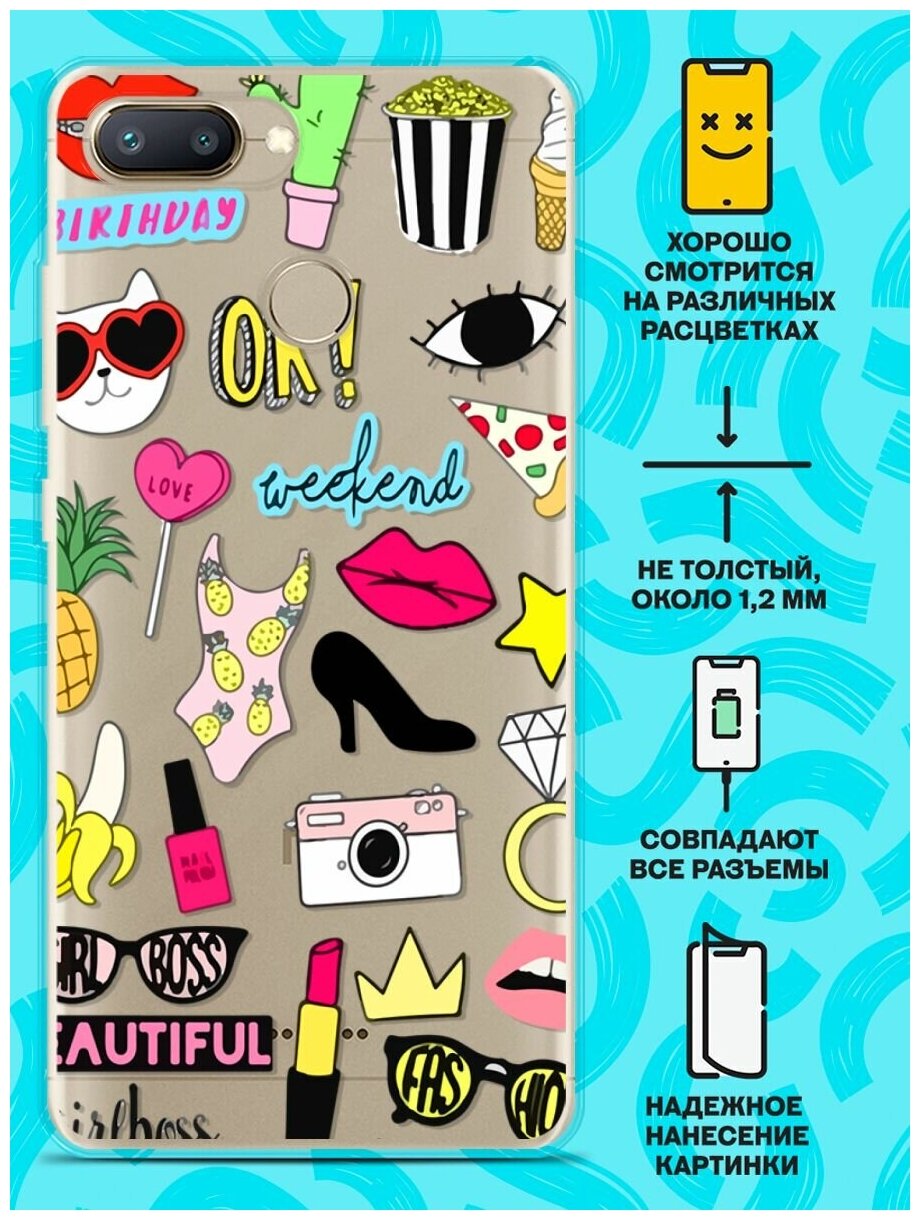 10 цен на Силиконовый чехол на Xiaomi Redmi 6 Узор из принадлежностей / для Сяоми Редми 6