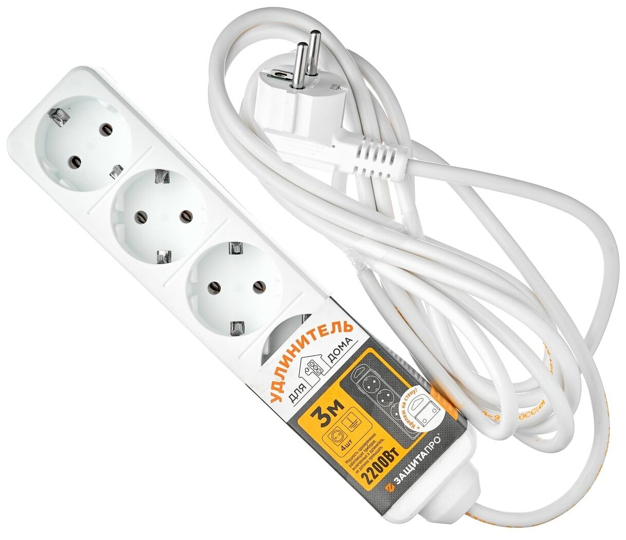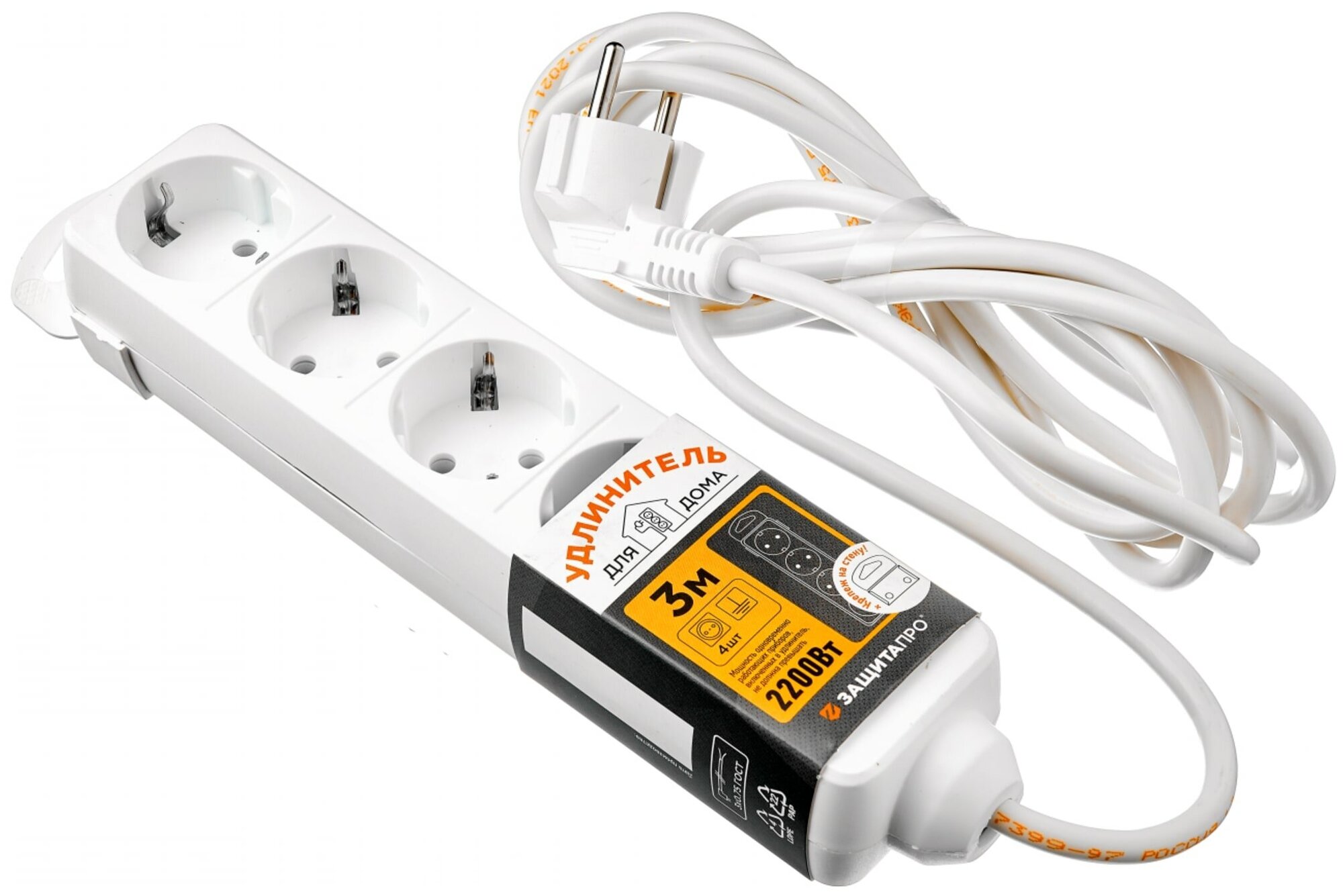 10 цен на Удлинитель бытовой Защита Про 4 розетки с заземлением 3х0.75 мм 3 м 2200 Вт цвет белый