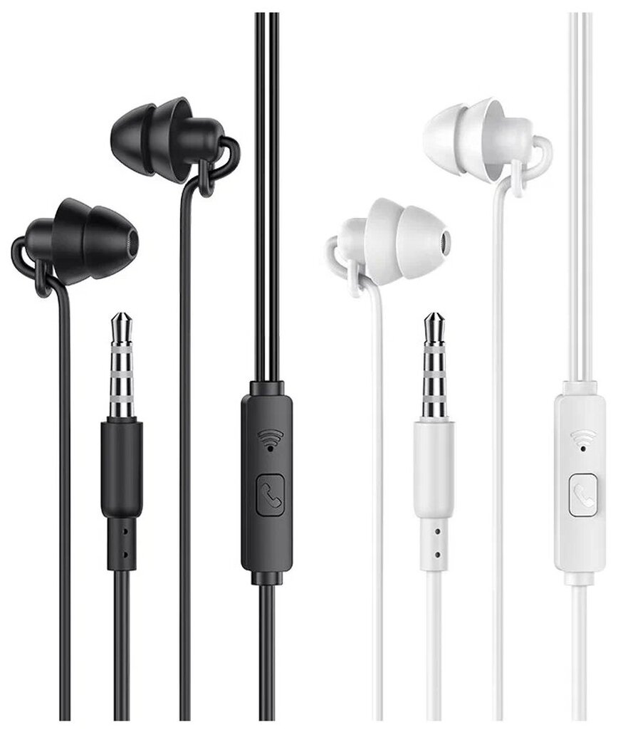 Наушники проводные HOCO M81 Mini Silicone Sleep, Jack 3.5mm с микрофоном, 1.2 м, Черный