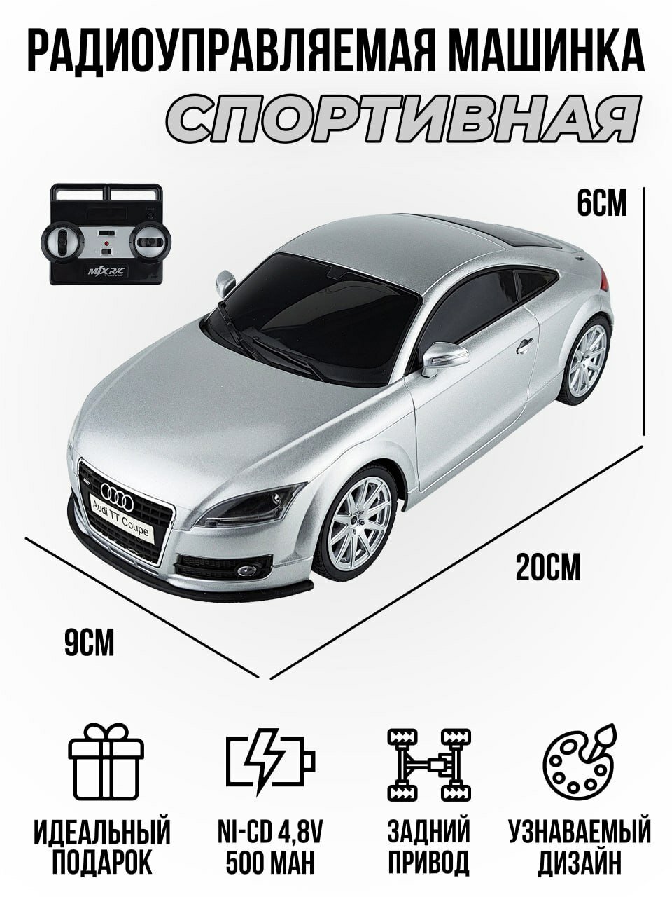 Радиоуправляемая машинка Audi TT Silver масштаб 1:20 MJX 8126A информация: