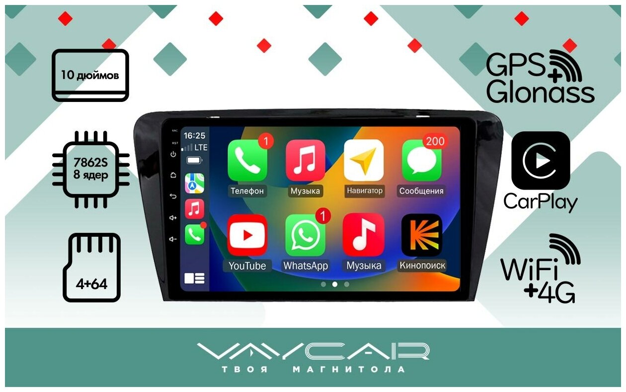 Отзывы на Штатная Магнитола для SKODA Octavia A7 2013+ VAYCAR 10VO4 (Android 10.0, QLED 1280x720, 4 + 64, 8 ядер, 4G + Wi-Fi)