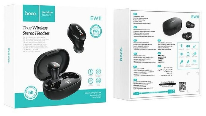 10 цен на Наушники Hoco E11 TWS, беспроводные, вакуумные, BT5.1, 40/300 мАч, микрофон, черные