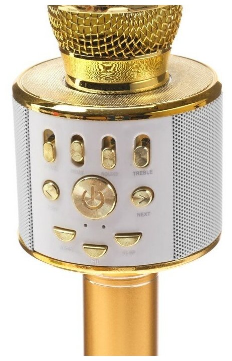 10 цен на Микрофон для караоке LuazON LZZ-70, WS-868L, 5 Вт, 1800 мАч, корр голоса, подсветка, золотистый