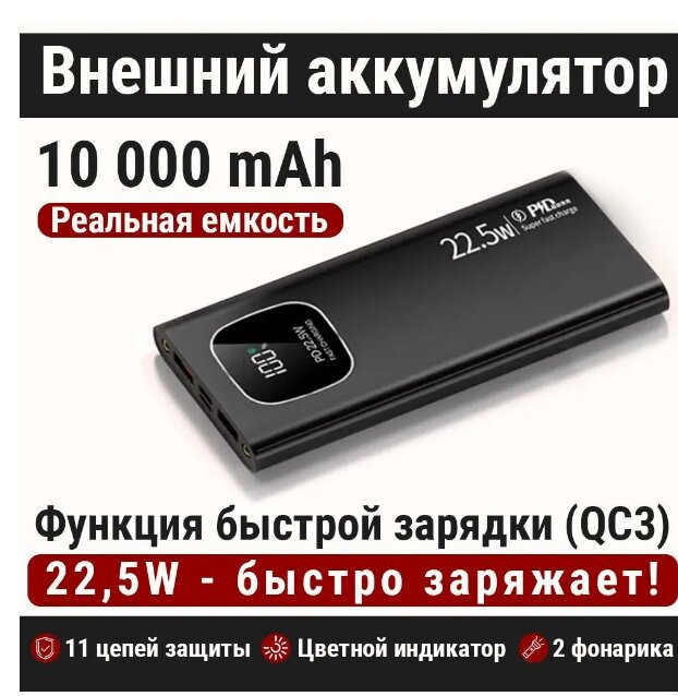 Отзывы на Внешний аккумулятор Повербанк Powerbank 10000 mAh выходы 2xUSB 1xType-c