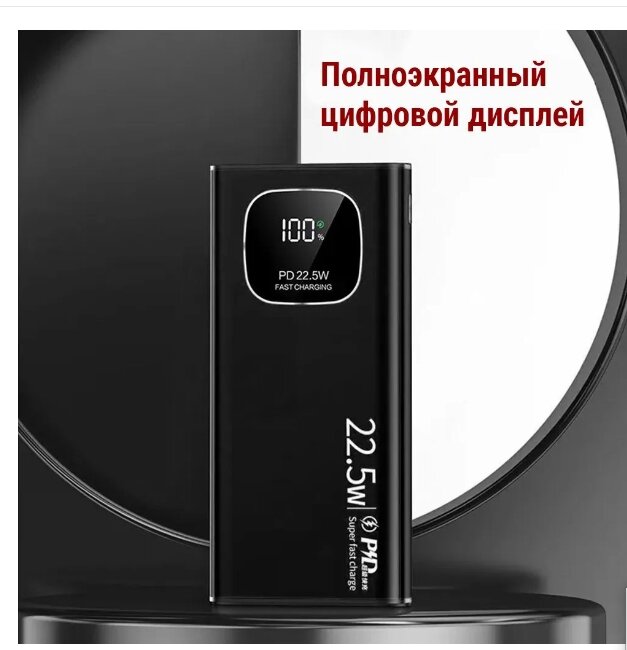 Повербанк Powerbank 30000mah с быстрой зарядкой, внешний аккумулятор для телефона iPhone, Xiaomi, Samsung