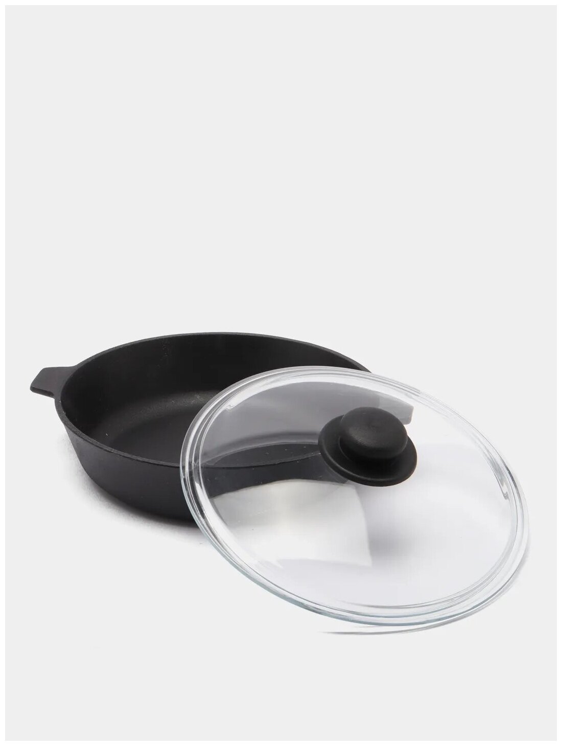 Отзывы на Сковорода чугунная Камская посуда 260х60 со стеклянной крышкой и 2 ушками