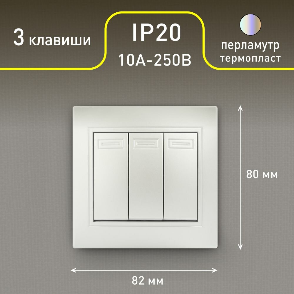 10 цен на Выключатель Intro Plano 1-106-06 тройной, 10А-250В, IP20, СУ, перламутр