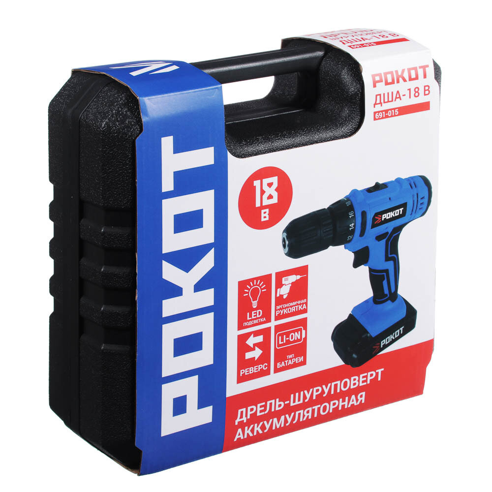 10 цен на Рокот Дрель-шуруповерт аккум. ДША-18в, 0-450-1550 об/мин, 1,3 Li-on (1), 30 н*м, подсветка