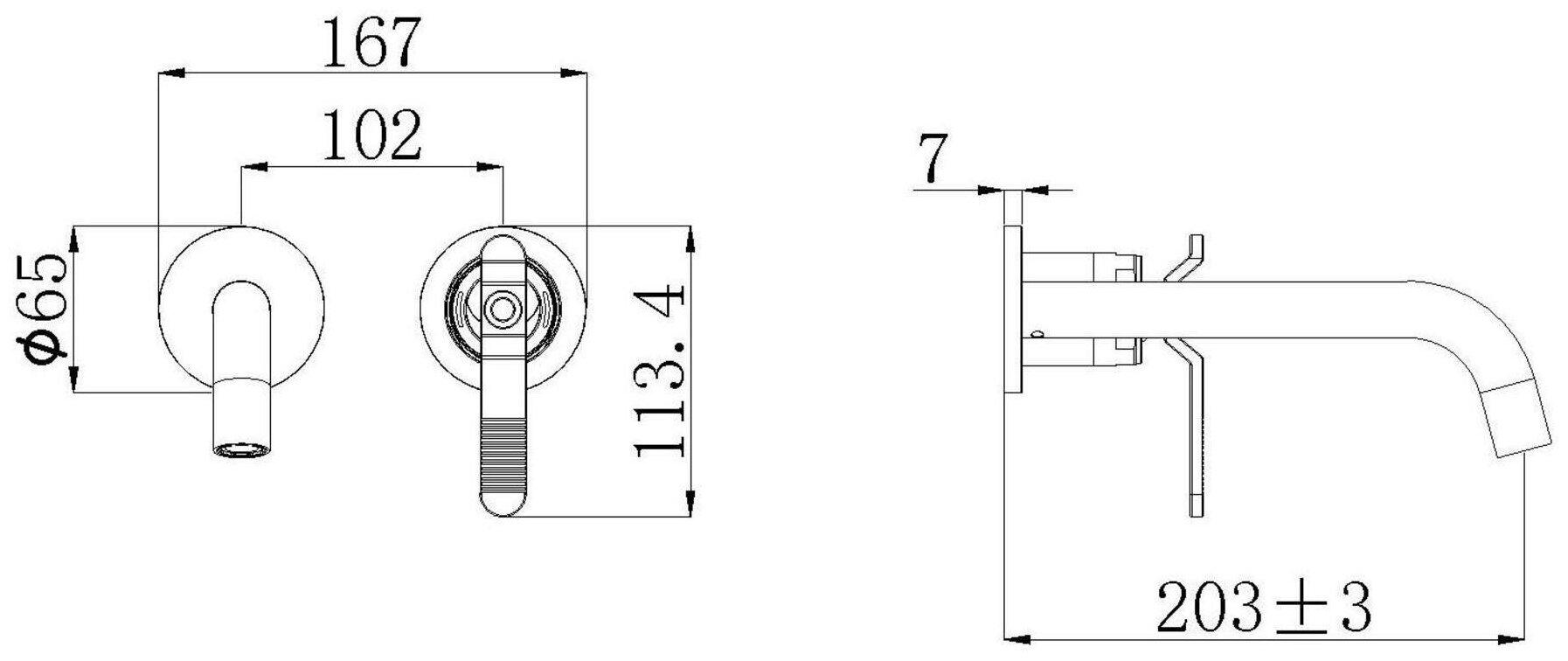 Смеситель на раковину настенный Эверест B46-350 с круглым поворотным изливом, кран-буксы 1/2", хром