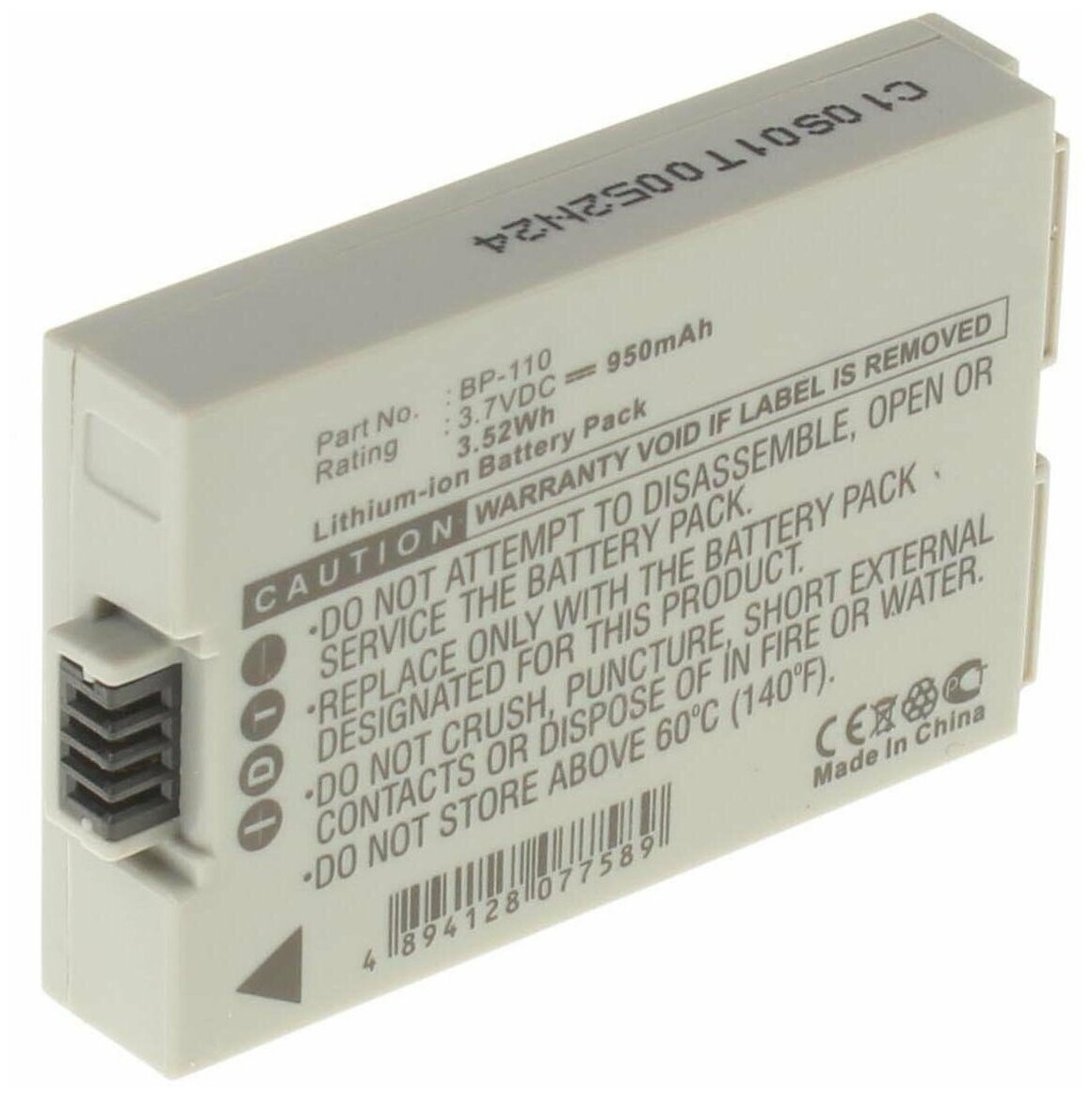Аккумулятор iBatt iB-B1-F136 950mAh для Canon BP-110, информация: