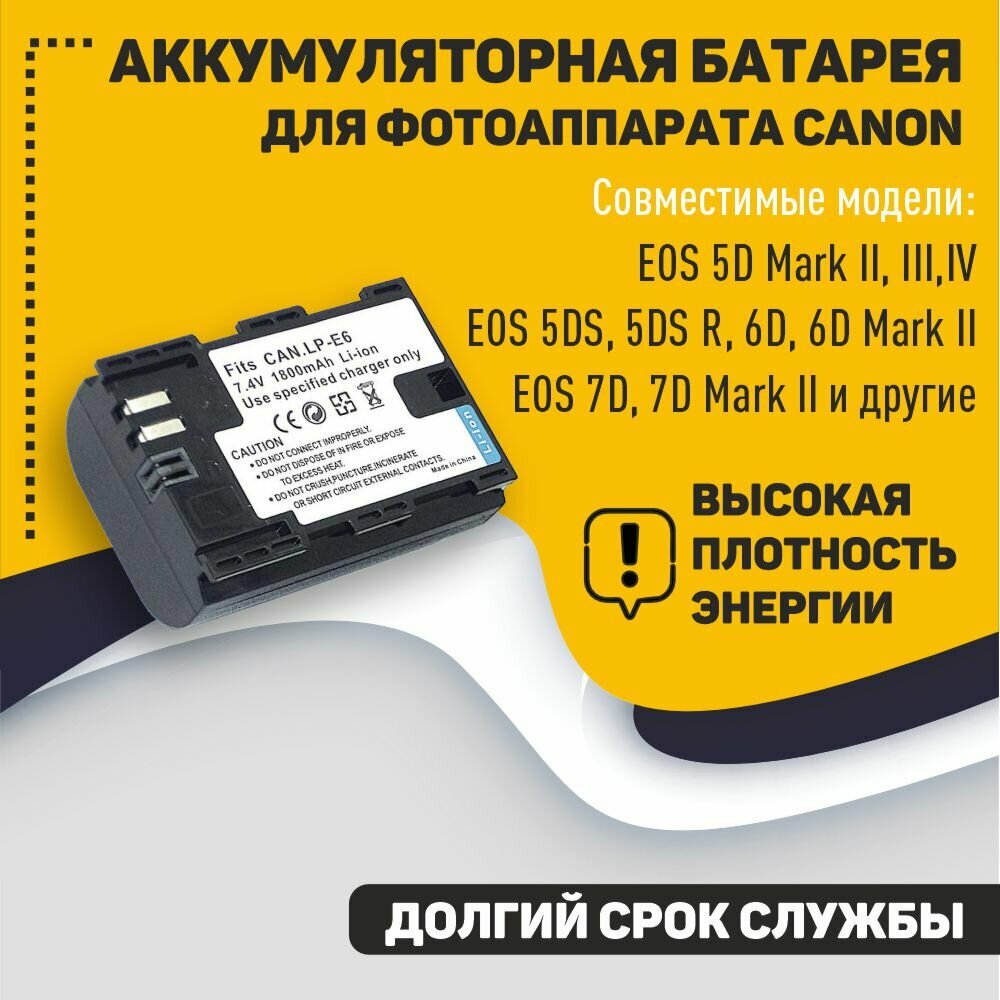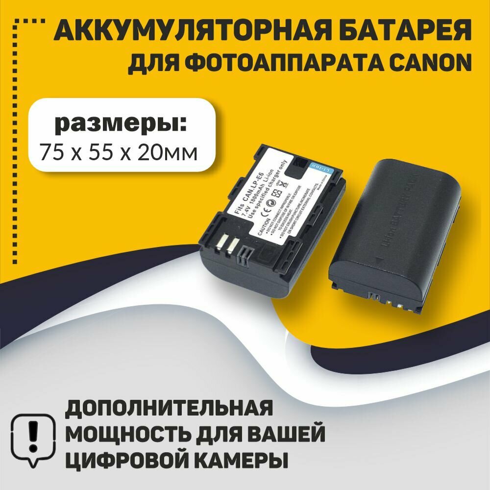 Аккумуляторная батарея для фотоаппарата Canon EOS 5D Mark II (LP-E6) 7.4V 1800mAh информация: