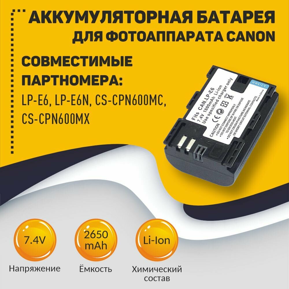 | Совместимый аккумулятор | LP-E6 / LP-E6N / CS-CPN600MC / CS-CPN600MX |