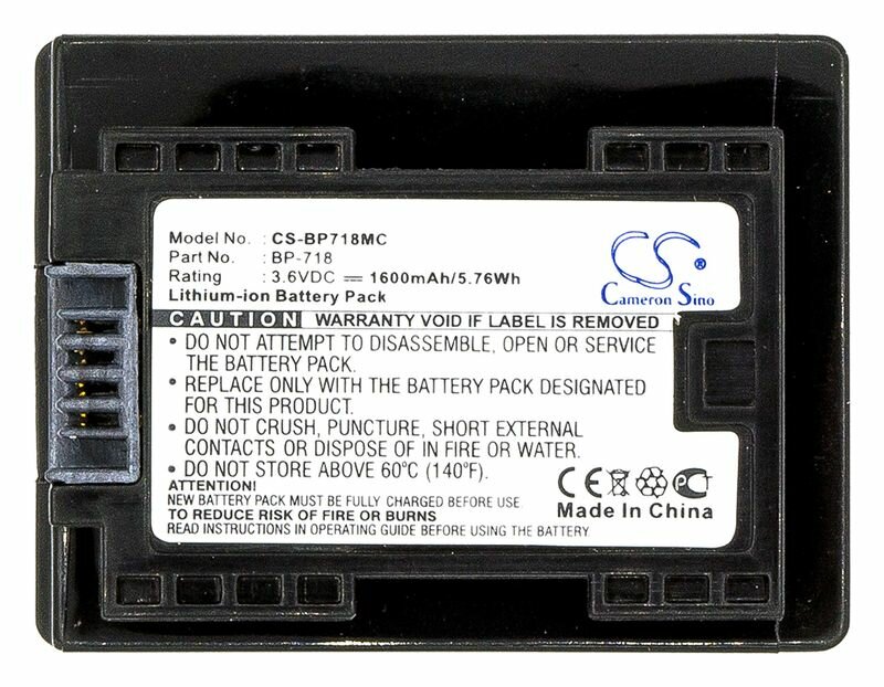 Аккумулятор CameronSino CS-BP718MC для Canon LEGRIA HF M50, M52, M56, M500, M506, R30, 1780mAh информация:
