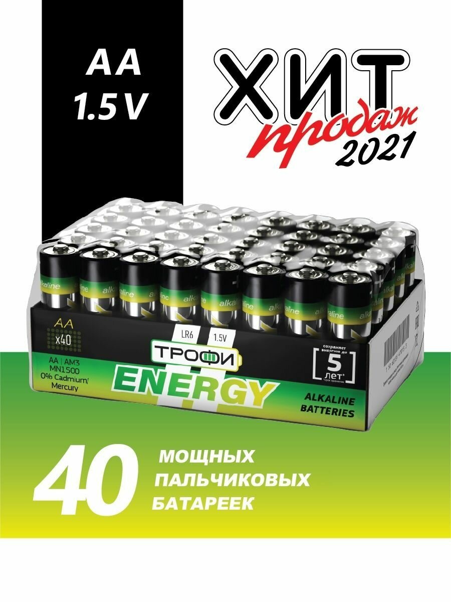 10 цен на Батарейки Алкалиновые Трофи Power Super Alkaline LR6 тип AA пальчиковые элементы питания усиленные в экономной упаковке годовой запас 40 шт