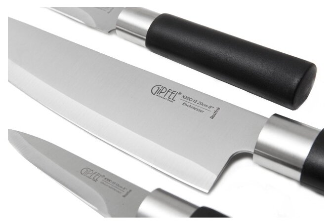 | Типы ножей в наборе | нож для овощей, нож для хлеба, разделочный нож, универсальный нож, шеф-нож |