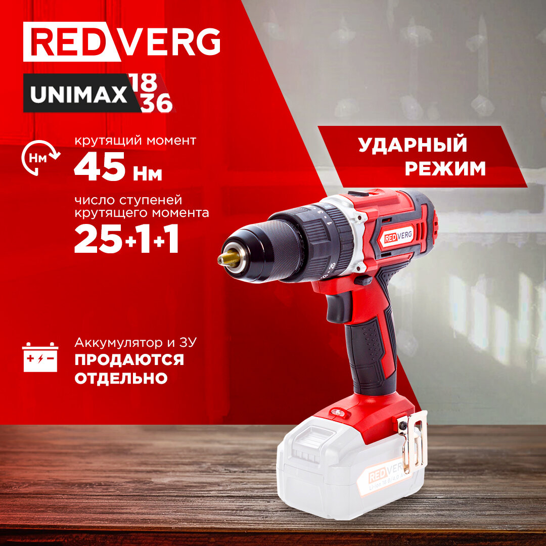 Шуруповерт аккумуляторный ударный RedVerg RD-IS18C/U (без акк, без з/у) информация: