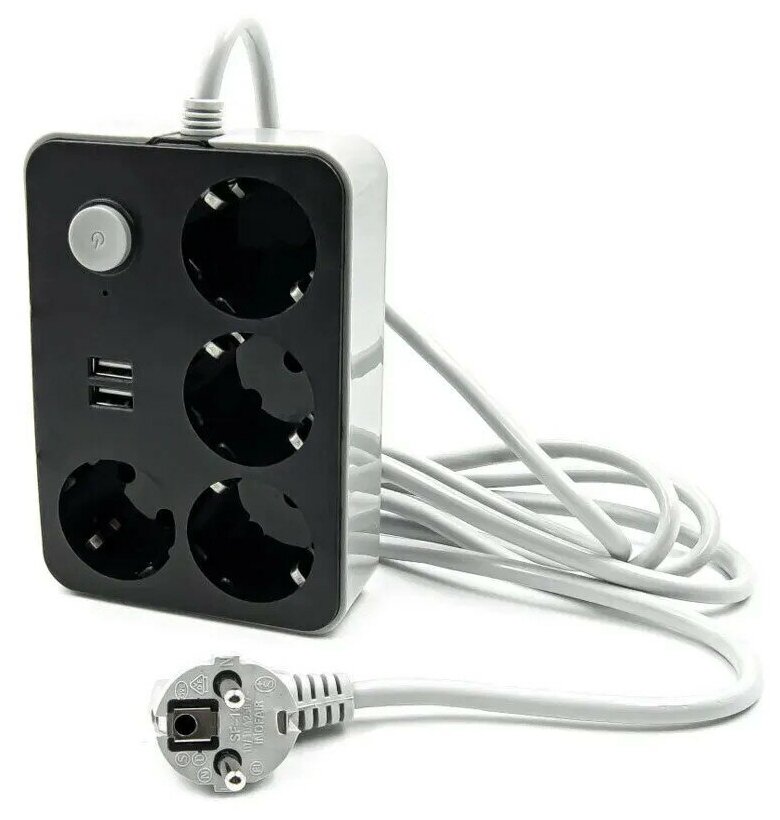 Сетевой фильтр с предохранителем с usb и защитой от напряжения кабель 2 метра 4 розетки Cиловой удлинитель квадрат
