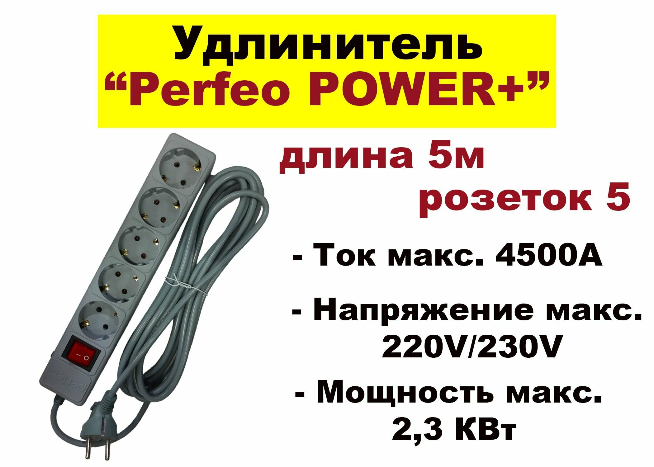 10 цен на Сетевой фильтр с заземлением и кнопкой Perfeo Power+, 5 м, 5 розеток (черный)