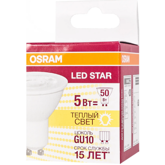 Отзывы на Светодиодная лампа LEDVANCE-OSRAM LS PAR16 5036 5W/830 (=50W) 230V GU10 350lm 36° 15000h OSRAM LED-лампа