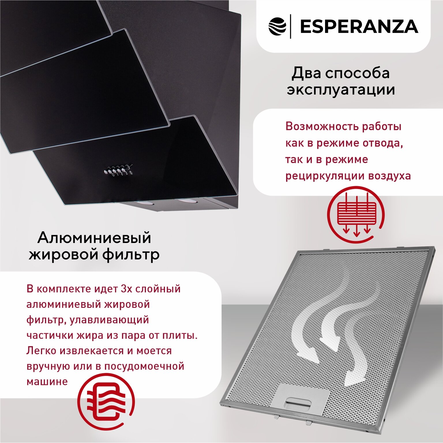 Вытяжка наклонная ESPERANZA RHA60G07 B информация:
