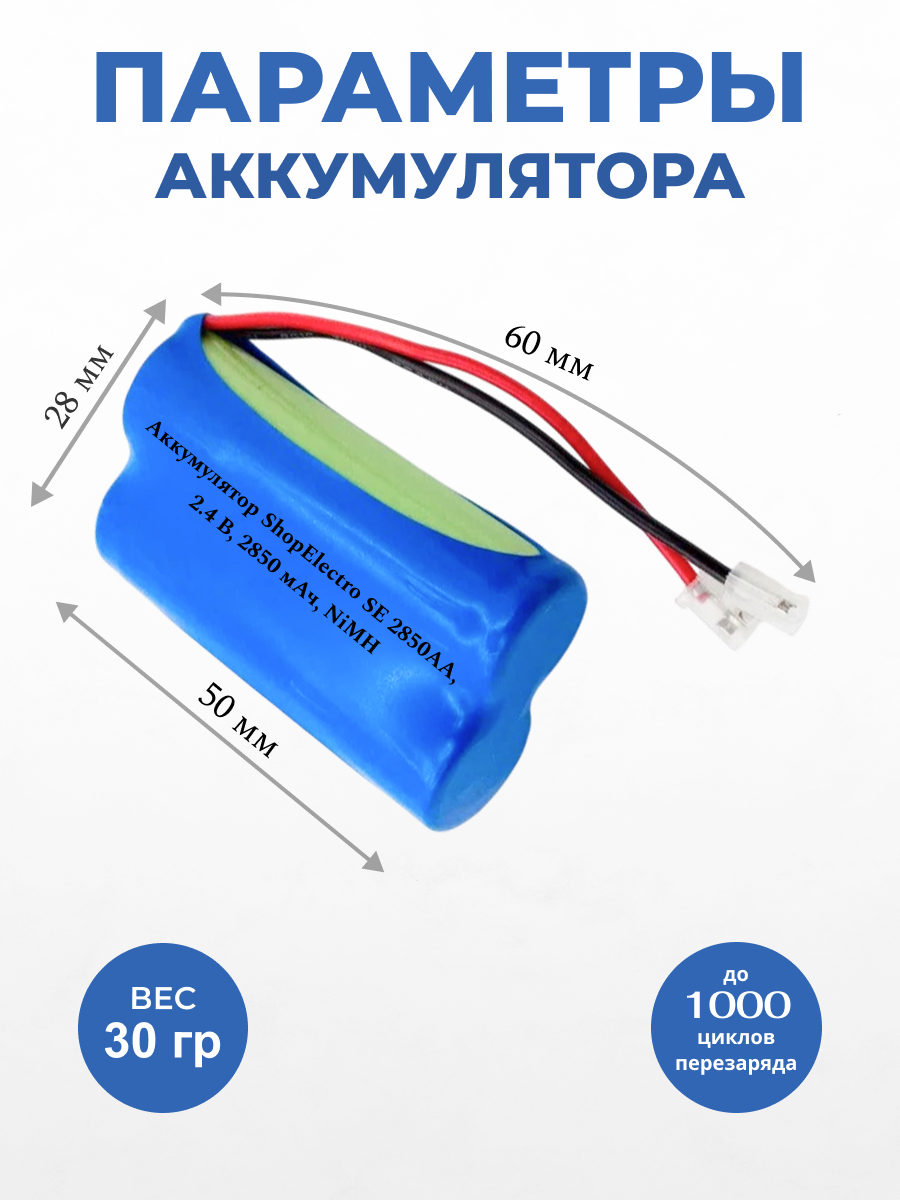Аккумулятор ShopElectro SE2850АА, 2.4 В, 2850 мАч/ 2.4 V, 2850 mAh, NiMH, с универсальным разъёмом информация: