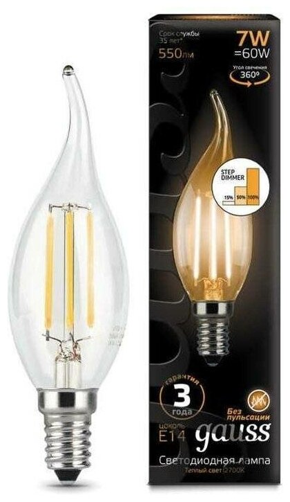 Отзывы на Типы/Лампочки/Филаментные Gauss Лампа светодиодная филаментная диммируемая Gauss E14 7W 2700K прозрачная 104801107-S