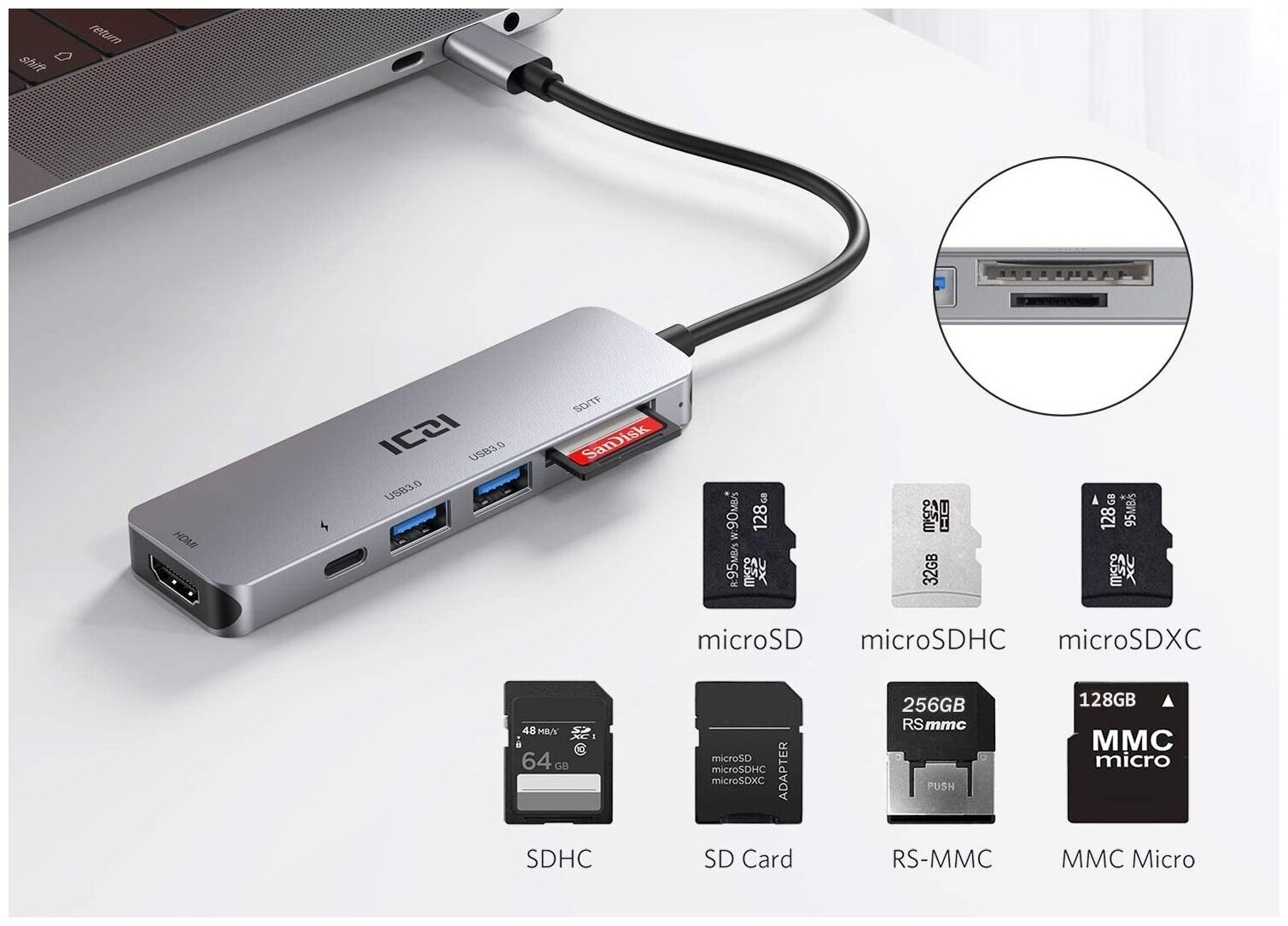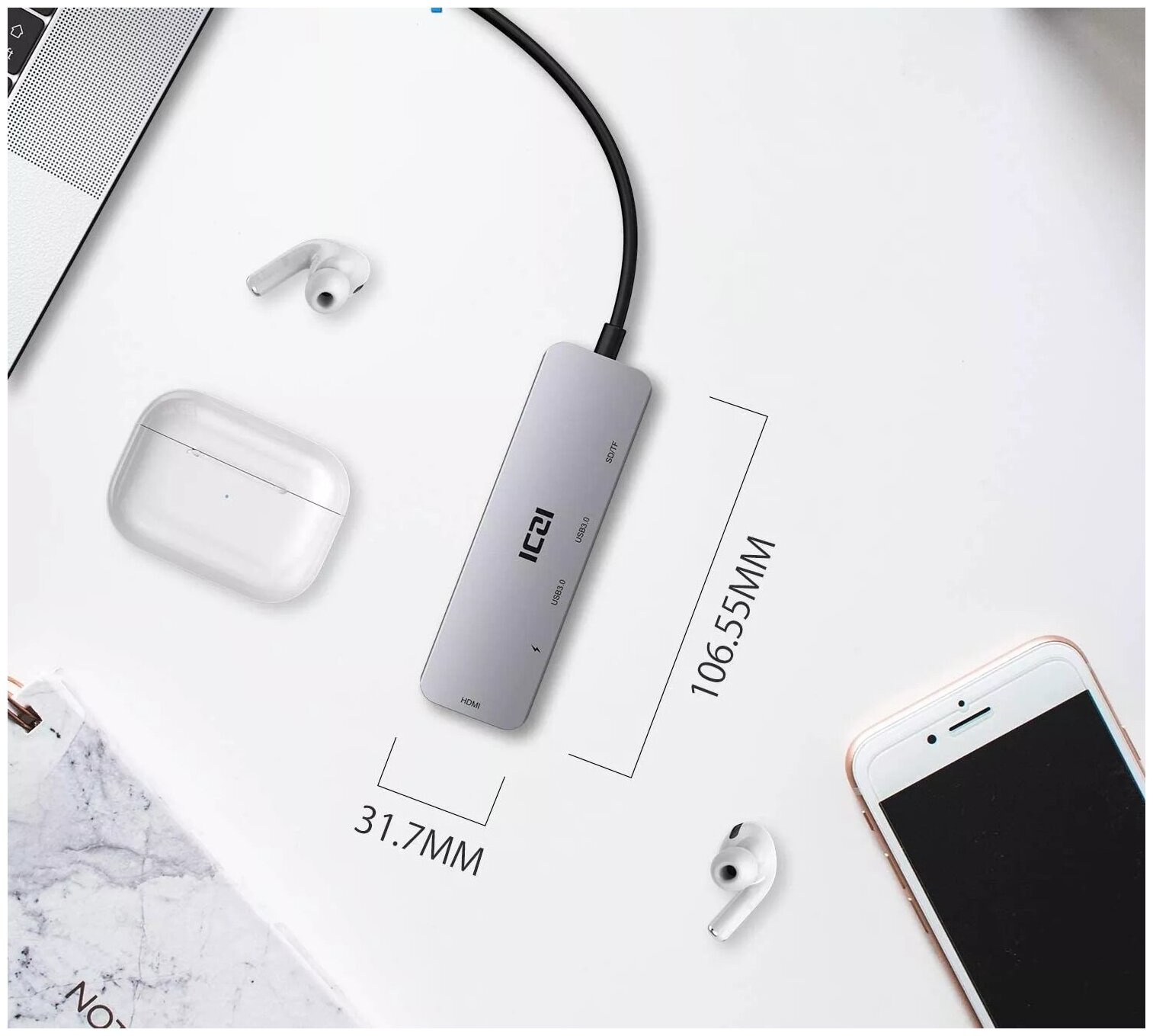 Отзывы на Хаб USB-концентратор ICZI 6 в 1 (PD+HDMI+TF/SD+2xUSB3.0) Multifunctional Type-C Gray