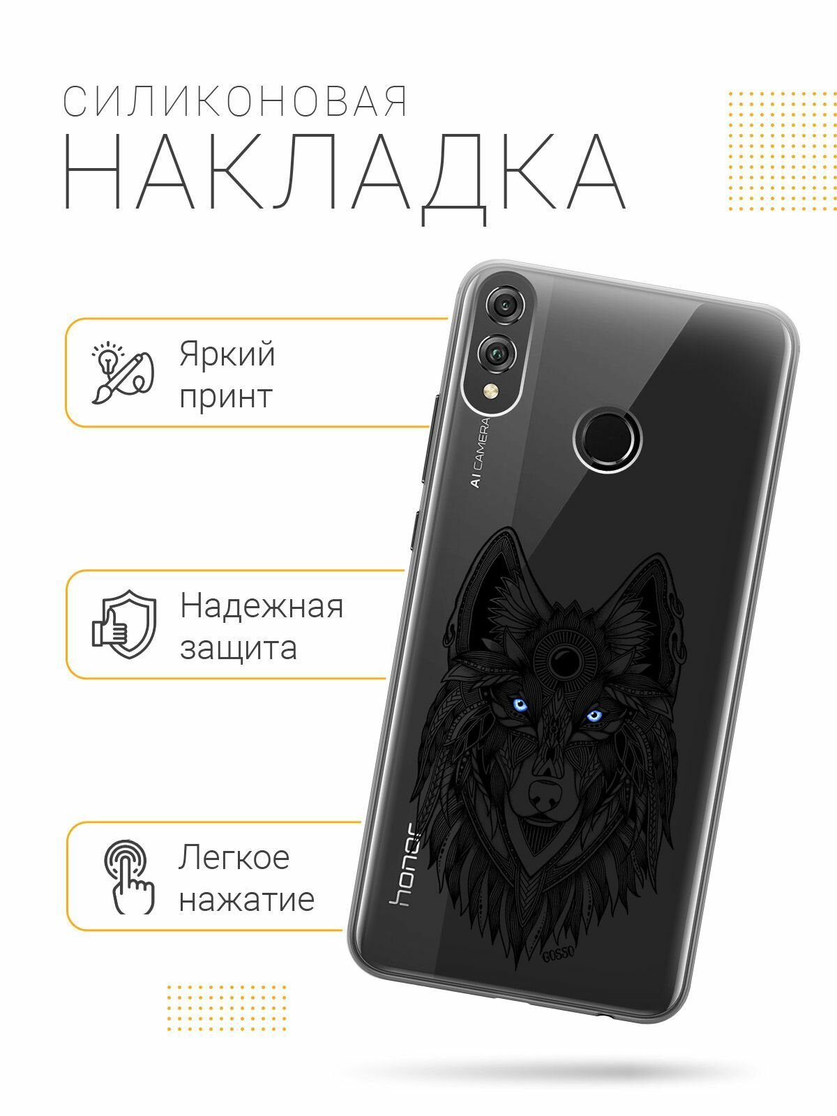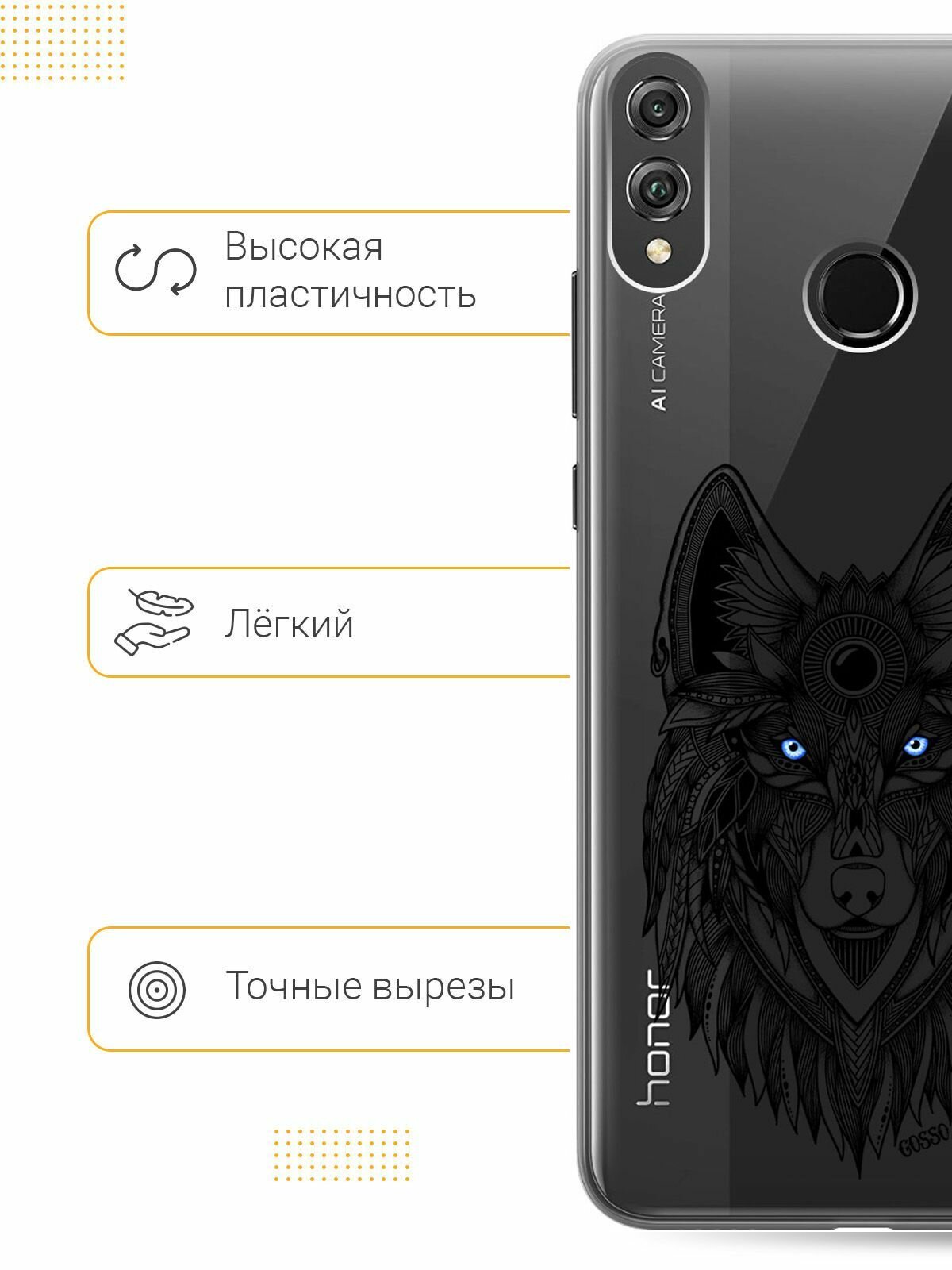 Отзывы на Ультратонкий силиконовый чехол-накладка для Huawei Honor 8X с 3D принтом "Grand Wolf"