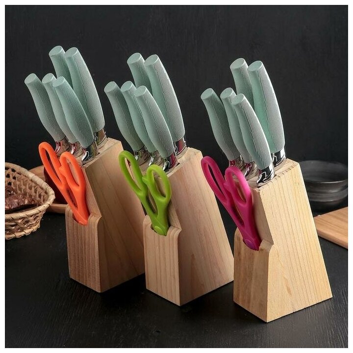 10 цен на Набор кухонный, 6 предметов: 5 ножей 8,5 см, 12 см, 12 см, 19,7 см, 19 см, ножницы, цвет голубой