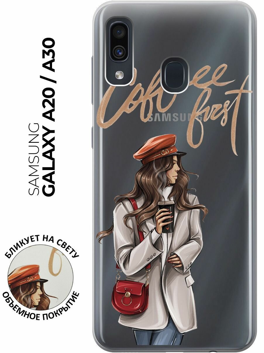 Чехол - накладка Transparent 3D для Samsung Galaxy A20 / A30 с принтом "Cofee First" информация: