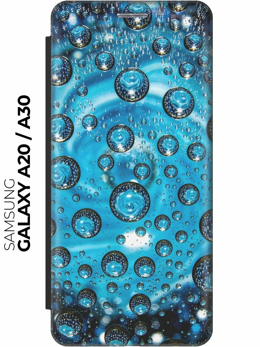 Чехол-книжка Голубые капли на Samsung Galaxy A20 / A30 / Самсунг А20 / А30 черный информация: