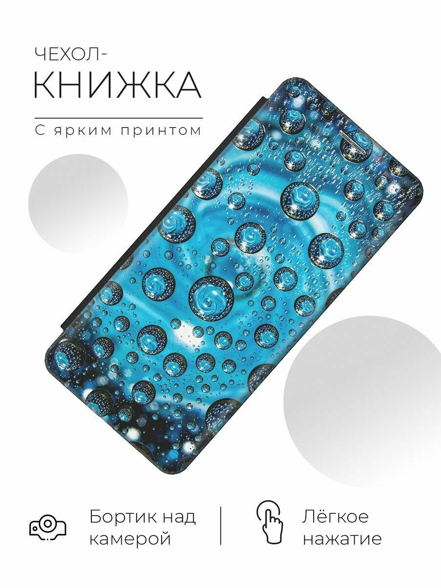 Отзывы на Чехол-книжка Голубые капли на Samsung Galaxy A20 / A30 / Самсунг А20 / А30 черный