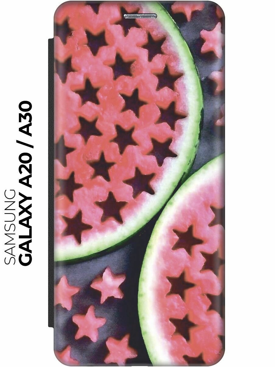Чехол-книжка Звездочки из арбуза на Samsung Galaxy A20 / A30 / Самсунг А20 / А30 черный информация: