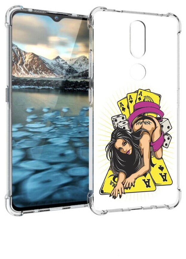 Отзывы на Чехол задняя-панель-накладка-бампер MyPads нарисованная девушка с игровыми картами для Nokia 2.4 противоударный