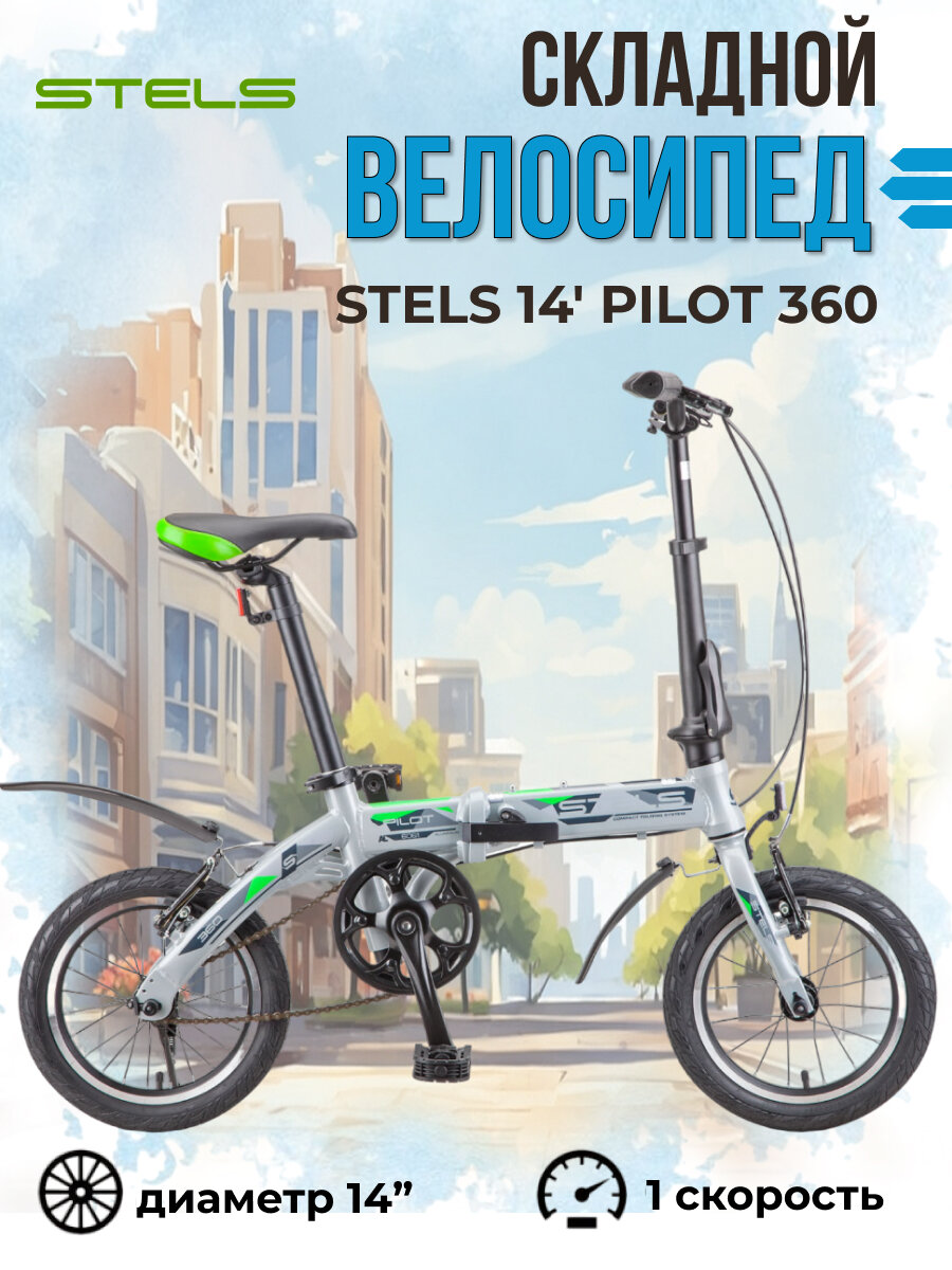 Отзывы на Складной велосипед Stels с колесами 14" Pilot 360 серый алюминиевая рама, 1 скорость