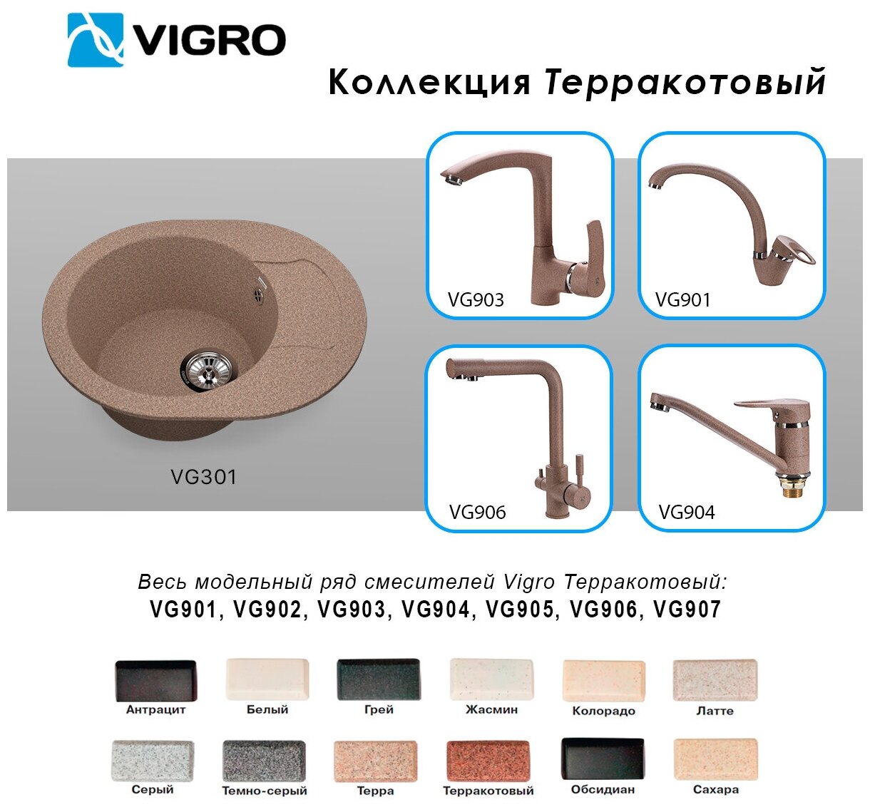 Кухонная мойка из искусственного камня Vigro VG301 терракотовый (570*460*195) информация: