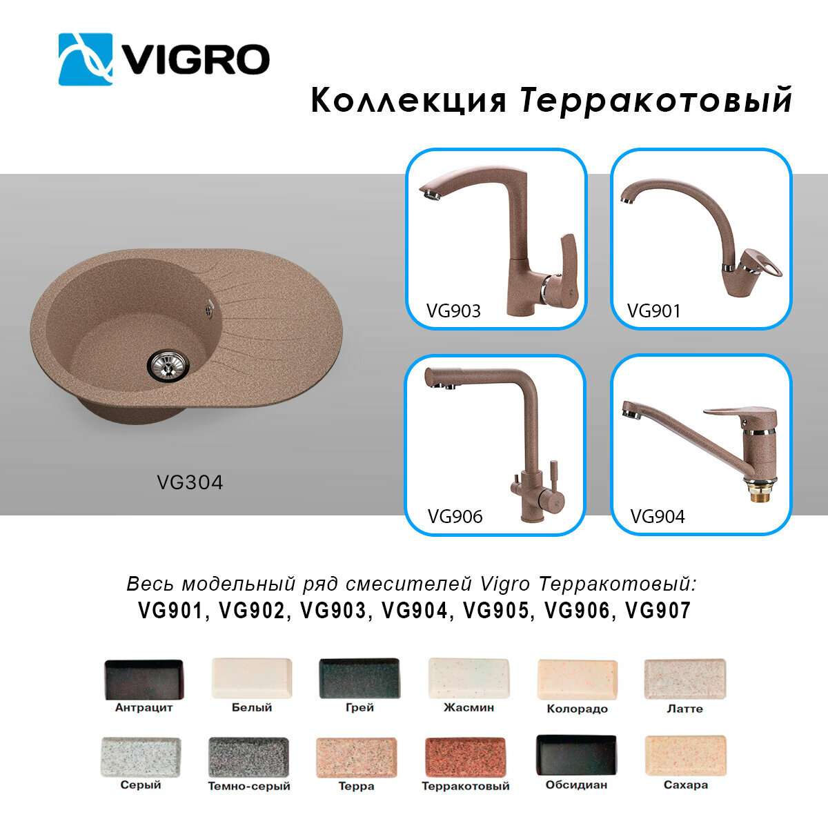 Мойка кухонная врезная Vigro VG304 терракотовый (750*500*190) информация: