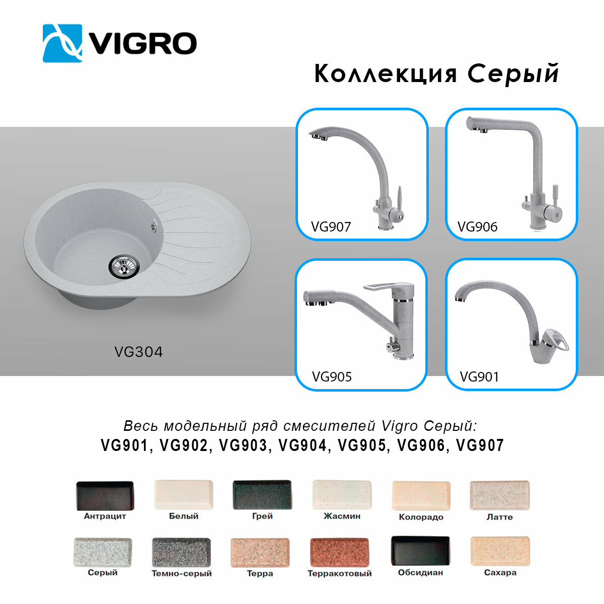 Мойка кухонная врезная Vigro VG304 серый (750*500*190) информация: