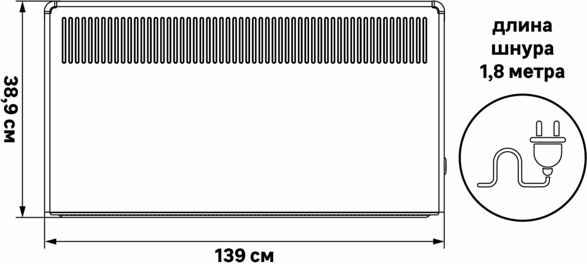 Обогреватель для дома Sibio 1500 Вт конвектор электрический черный, настенный, с термостатом, конвекторный