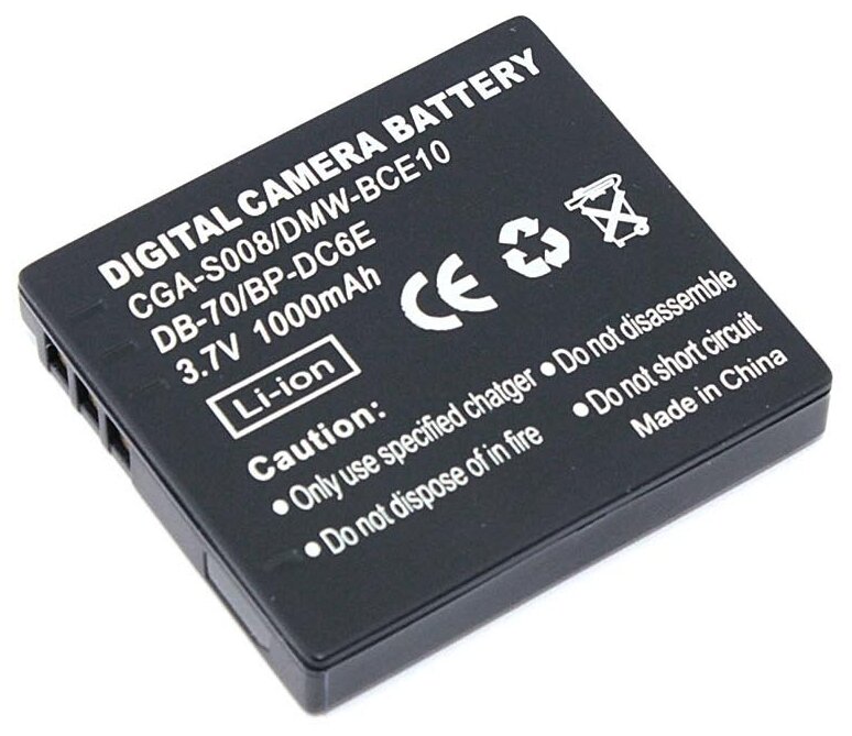 | Совместимый аккумулятор | BP-DC6 BP-DC6-E BP-DC6-J BP-DC6-U CGA-S008 CGA-S008A CGA-S008A/1B CGA-S008E CGA-S008E/1B CS-BCE10 DB-70 DMW-BCE10 MW-BCE10E VW-VBJ10 VW-VBJ10E-K |