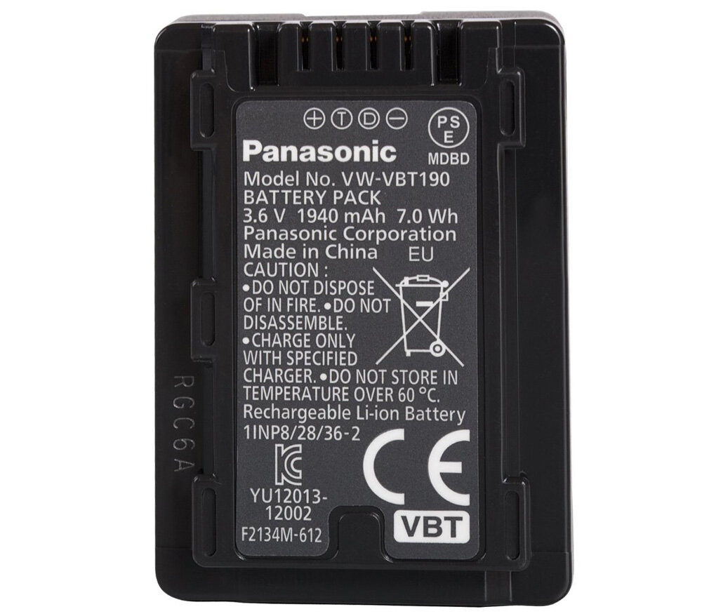 Аккумулятор Panasonic VW-VBT190E-K для видеокамер информация: