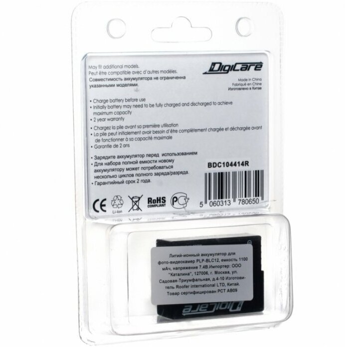 Аккумулятор DigiCare Plp-blc12/ DMW-BLC12 для Dmc-g5, G6, Gh2, Fz200, FZ1000 PLP-BLC12 . информация: