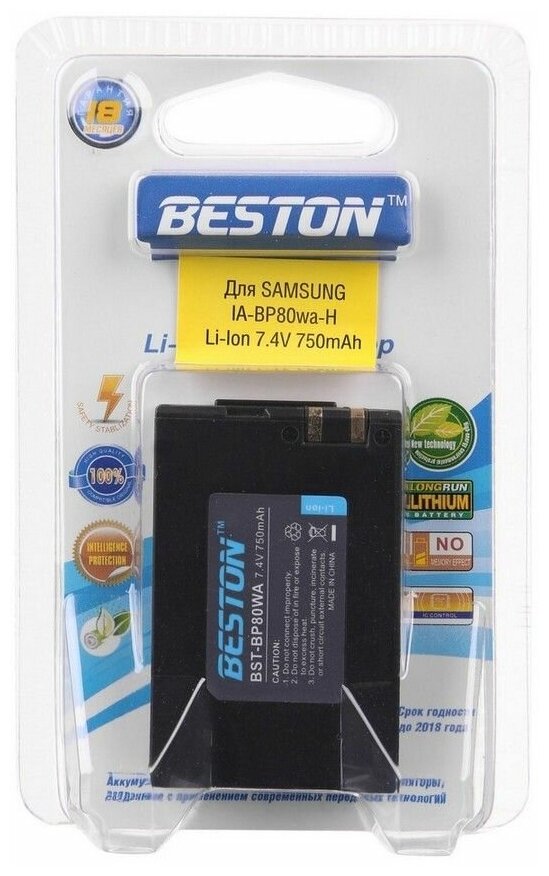 Аккумулятор BESTON для видеокамер SAMSUNG BST-IA-BP80WA-H (IA-BP80W), 7.4 В, 750 мАч информация: