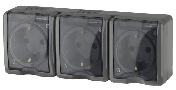 Розетка ЭРА 11-2405-03 3х2P+E IP54, 16A-250В, ОУ, ЭРА Эксперт, серый арт. Б0020721 (1 шт.)