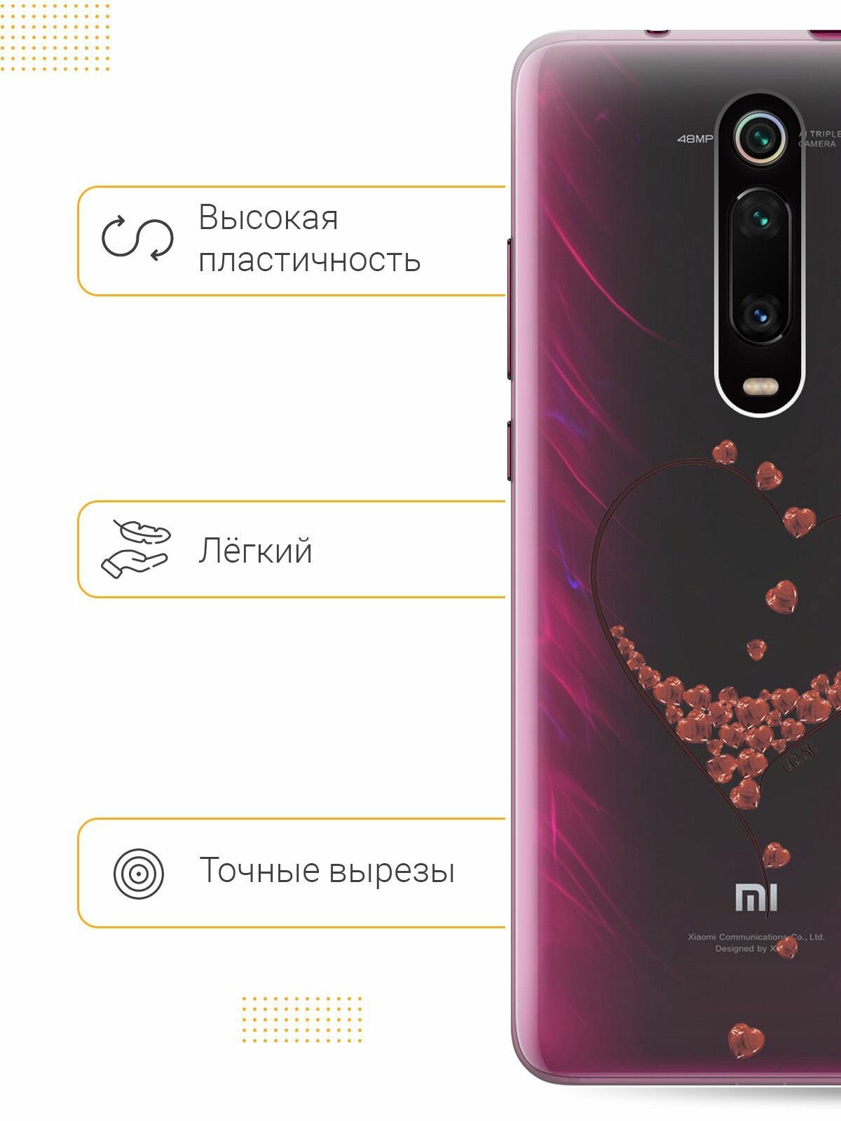 Отзывы на Ультратонкий силиконовый чехол-накладка Transparent для Xiaomi Mi 9T / Mi 9T Pro / K20 / K20 Pro с 3D принтом "Little hearts"