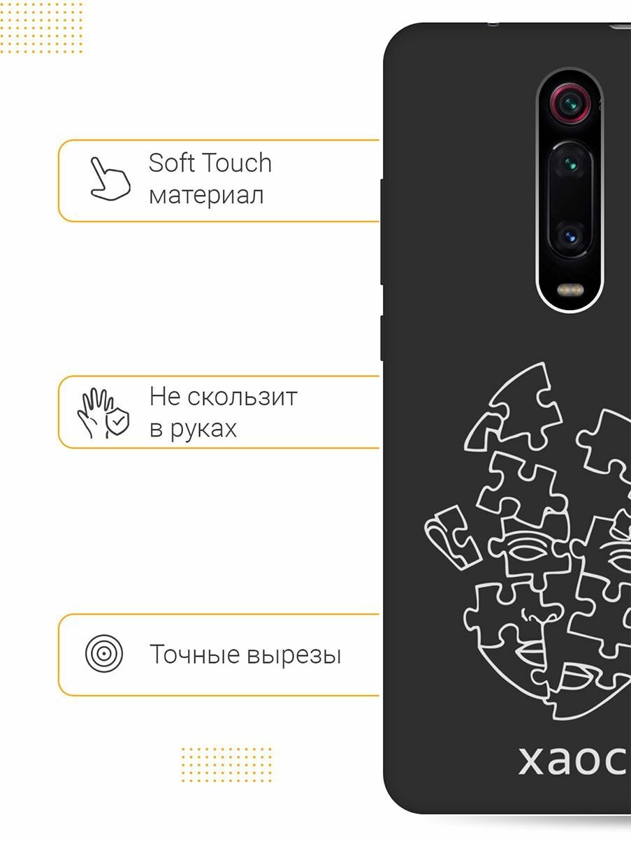 Матовый Soft Touch силиконовый чехол на Xiaomi Mi 9T, Mi 9T Pro, K20, K20 Pro, Сяоми Ми 9Т, Ми 9Т Про с 3D принтом "Chaos W" черный 513 ₽