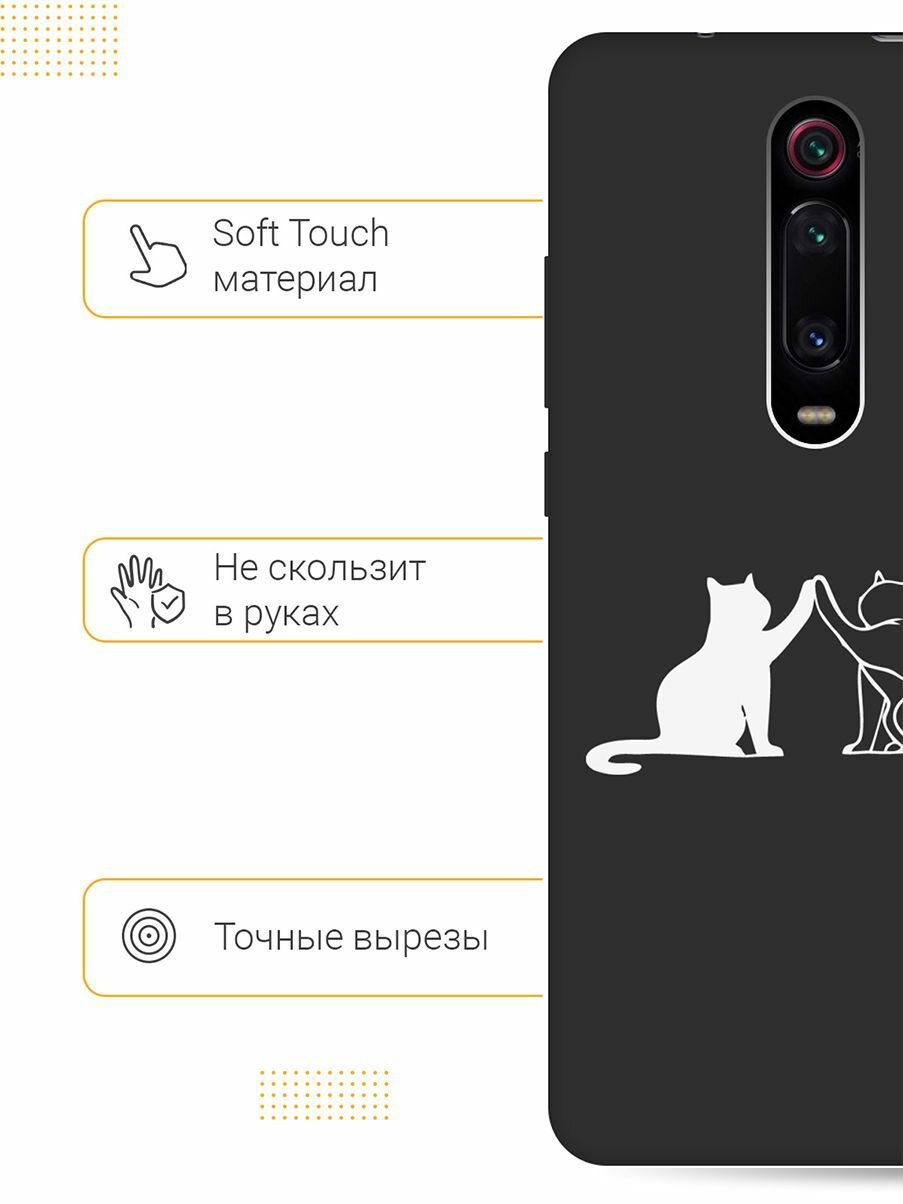 Матовый Soft Touch силиконовый чехол на Xiaomi Mi 9T, Mi 9T Pro, K20, K20 Pro, Сяоми Ми 9Т, Ми 9Т Про с 3D принтом "Cats W" черный 513 ₽