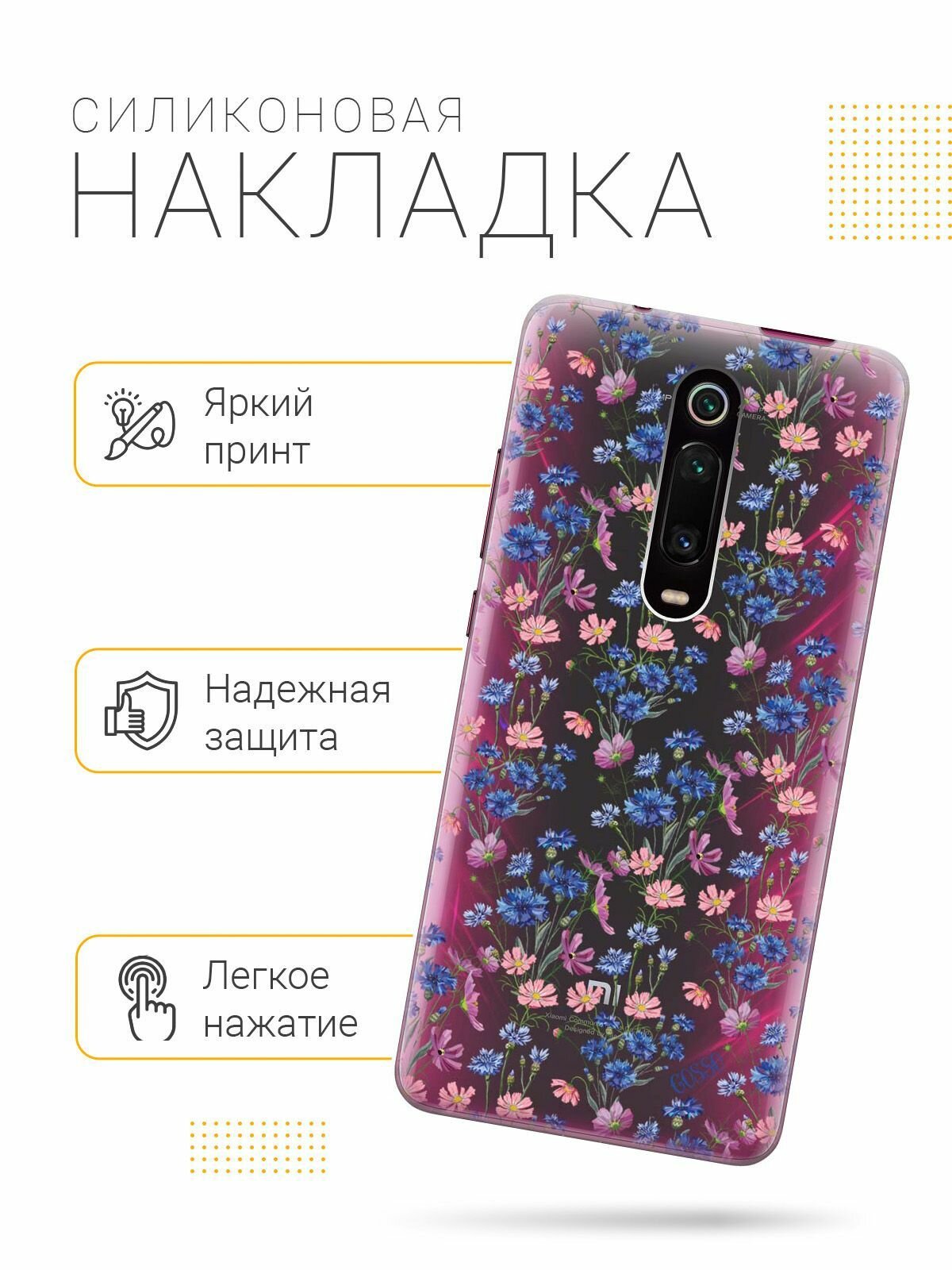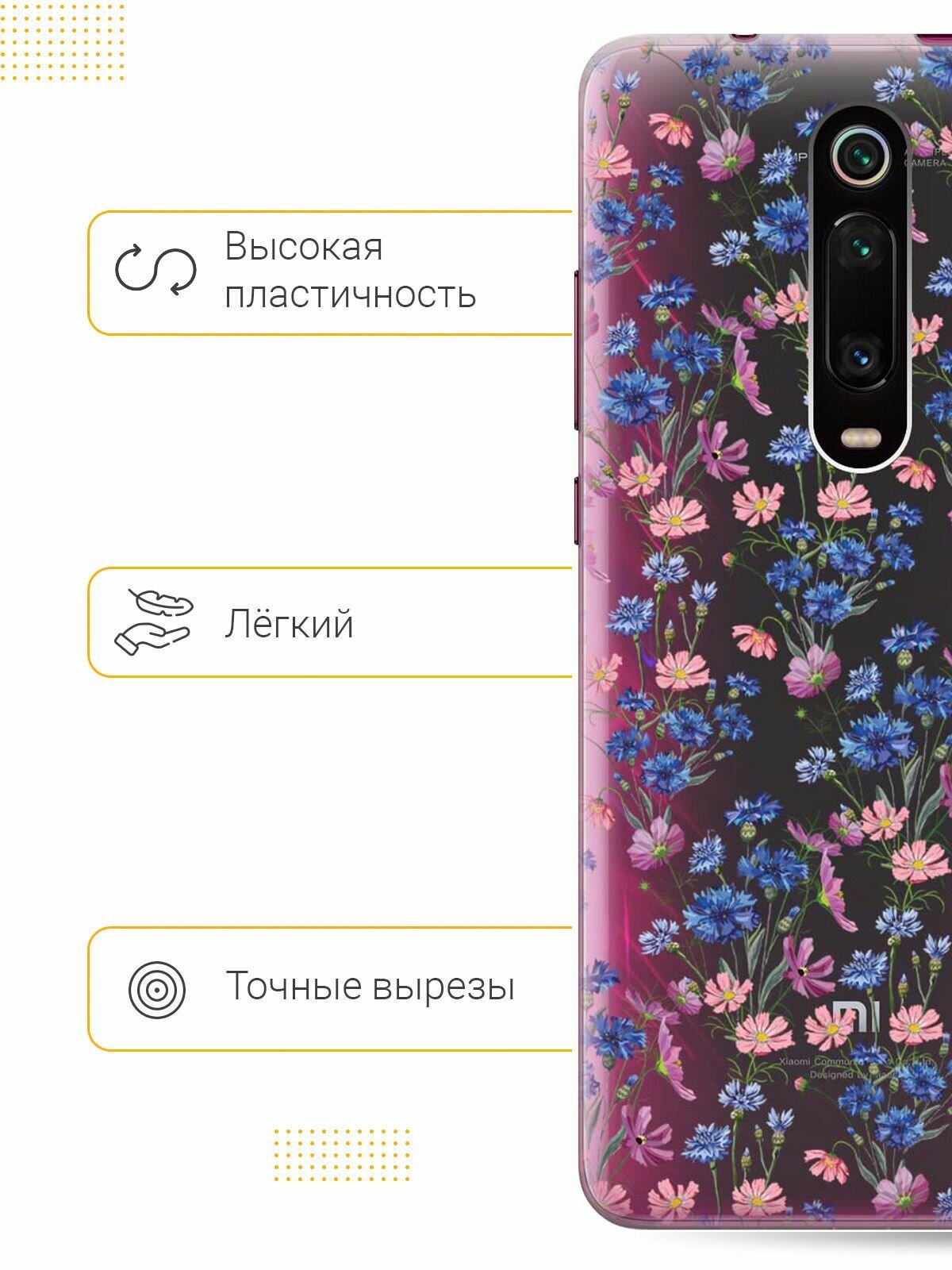 Отзывы на Ультратонкий силиконовый чехол-накладка Transparent для Xiaomi Mi 9T / Mi 9T Pro / K20 / K20 Pro с 3D принтом "Lovely Cornflowers"