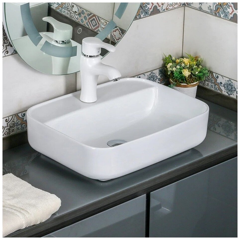 Накладная-подвесная раковина для ванной Lavinia Boho Bathroom Sink 33311023: прямоугольная, ширина умывальника 40 см, цвет глянцевый белый