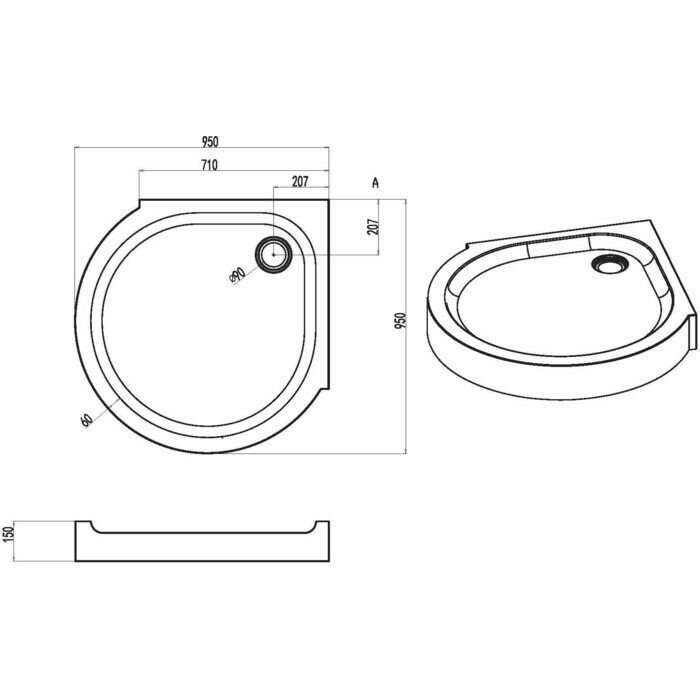 Акриловый поддон для душа AM.PM Like Round 95х95 W83T-333-095W Белый информация: